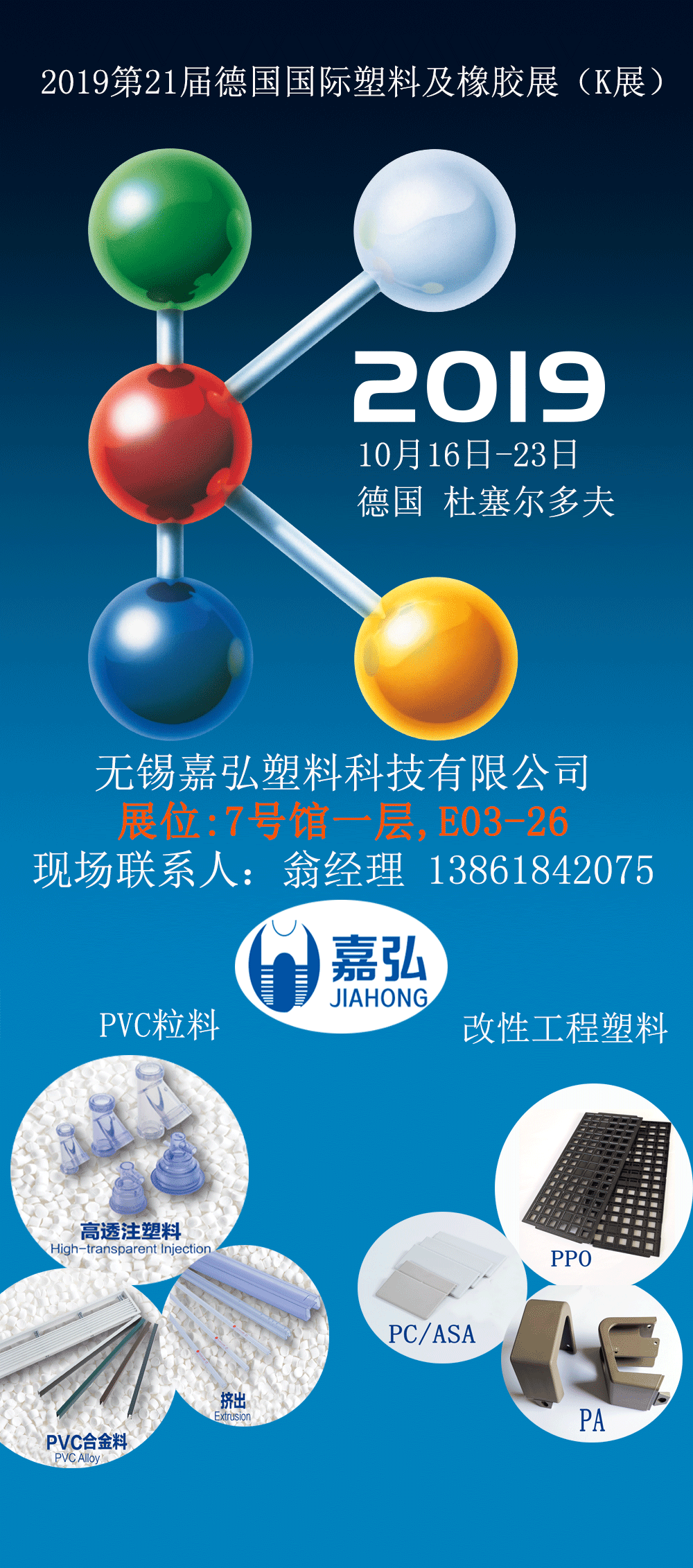 嘉弘塑料的展位號為7號館一層E03-26,歡迎各界新老客戶蒞臨指導(dǎo)!
