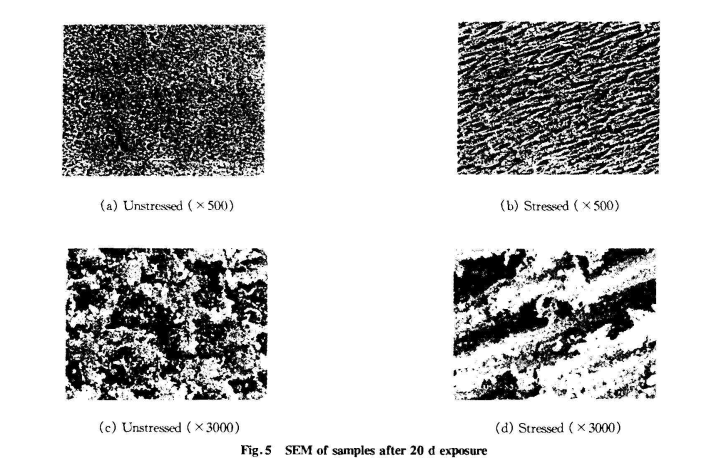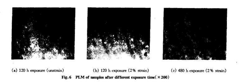 綜上所述,應(yīng)力通過引發(fā)PVC材料聚集態(tài)結(jié)構(gòu)的變化—— 取向和微裂紋的產(chǎn)生,交聯(lián)度的降低,使氧化反應(yīng)加劇,脫HC1反應(yīng)區(qū)域的集中,從而導(dǎo)致PVC材料的紫外光老化性能發(fā)生改變。